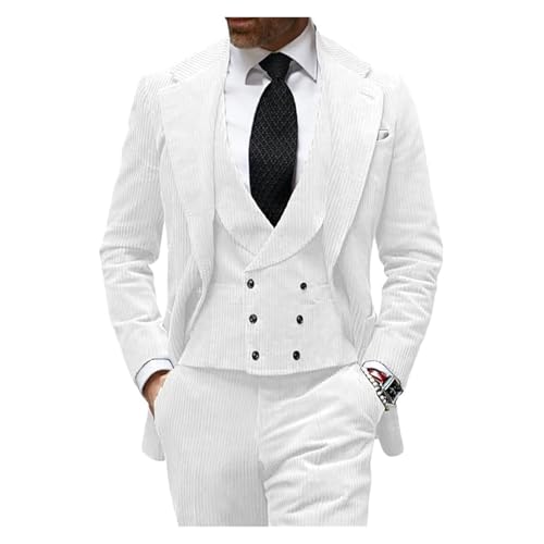 TRRYUIP Costume Mariage Homme Costume Homme 3 pièces en Velours côtelé, Blazer, Gilet, Pantalon, for événements Professionnels, Mariages, banquets, fêtes(White,3XL(US46)(EU56))