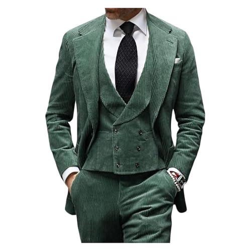 TRRYUIP Costume Mariage Homme Costume Homme 3 pièces en Velours côtelé, Blazer, Gilet, Pantalon, for événements Professionnels, Mariages, banquets, fêtes(Green,L(US40)(EU50))