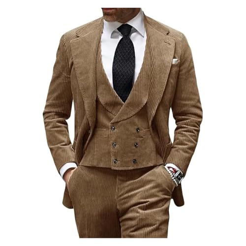 TRRYUIP Costume Mariage Homme Costume Homme 3 pièces en Velours côtelé, Blazer, Gilet, Pantalon, for événements Professionnels, Mariages, banquets, fêtes(Khaki,XS(US34)(EU44))