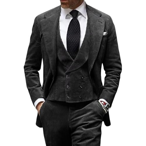 TRRYUIP Costume Mariage Homme Costume Homme 3 pièces en Velours côtelé, Blazer, Gilet, Pantalon, for événements Professionnels, Mariages, banquets, fêtes(Gray,L(US40)(EU50))