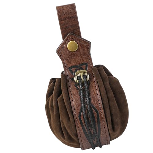 Pochettes de ceinture médiévales en simili cuir portable rétro Renaissance Sac banane porte-monnaie sac à dés pour Halloween Cosplay Renaissances Accessoires de costume pour homme, marron, taille