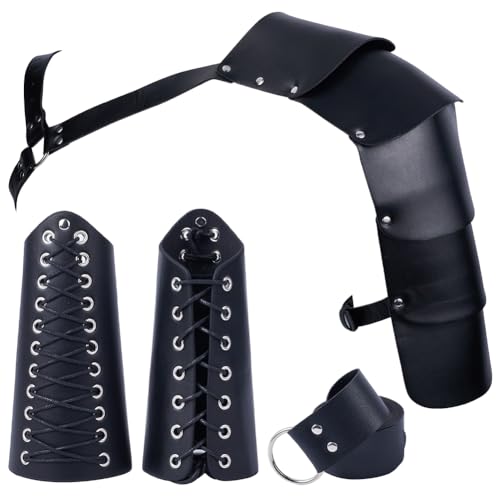 GORGECRAFT 4 pièce D'Accessoires de Costume Médiéval pour Homme Sangle à Boucle Réglable Armure en Cuir PU Noir Protège-Bras Ceinture à Nœud Papillon Kit Rétro Halloween Chevalier Guerrier de Cosplay