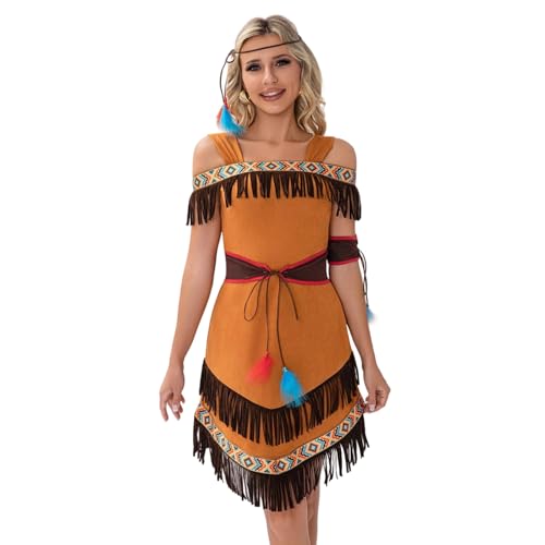 Costume d'indien pour femme, costume d'indienne, robe longue, ceinture, brassards et bandeau, costume de carnaval des années 60 et 70 pour carnaval, Halloween, cosplay, S-XXL