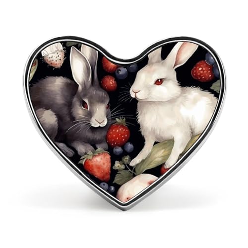 Broche en forme de cœur, motif lapin et fraise, yeux bleus, pour homme et femme, accessoire de costume, épinglette en émail léger de 2,5 cm, pour sacs à dos, chapeaux, sacs et cordons.