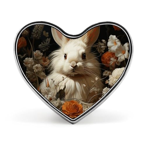 Broche en forme de cœur, motif lapin et fleurs, pour homme et femme, accessoire de costume, épinglette en émail léger de 2,5 cm, pour sacs à dos, chapeaux, sacs et cordons.
