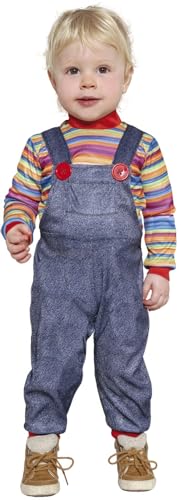 FIESTAS GUIRCA | Costume Baby Bad Doll (12-18 Mois) - T-shirt et Salopette - Costumes de Poupée Maléfique pour Halloween et Fêtes Costumées - Idéal pour Bébés et Petits Enfants - Bleu et Multicolore