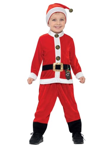 Smiffys Costume Père Noël, jeune enfant, Rouge et blanc, avec combinaison-pantalon et chapeau Halloween