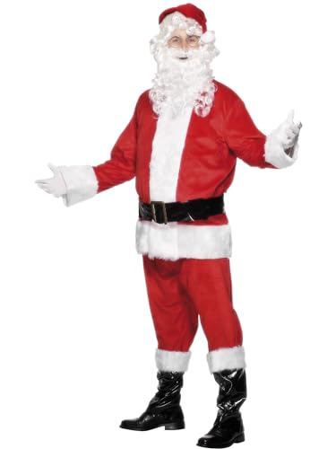 Smiffys Costume de Père Noël, Rouge, avec veste, pantalon, ceinture, bonnet, gants, couvre-bottes, Deluxe Halloween