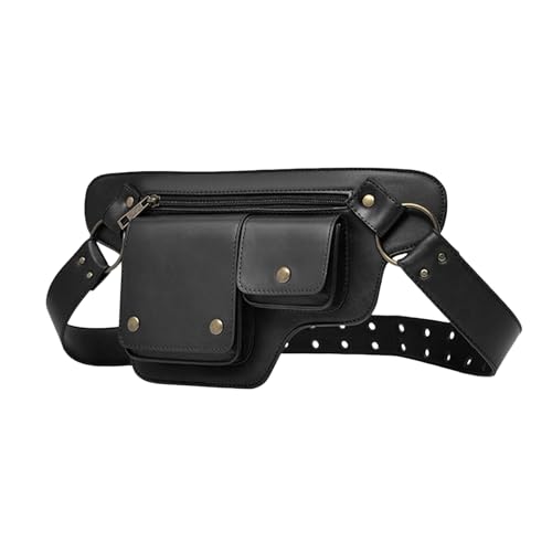 Sac à main Renaissance avec sangle pour la taille avec plusieurs poches, pack utilitaire réglable pour cosplay | Sac de costume de pirate pour homme, noir, Voir la description