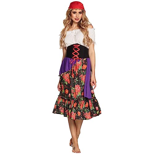 Boland - Costume pour adulte diseuse de bonne aventure Nadya, robe, ceinture et foulard, bandana, top, ceinture et jupe, ensemble, carnaval, fête à thème