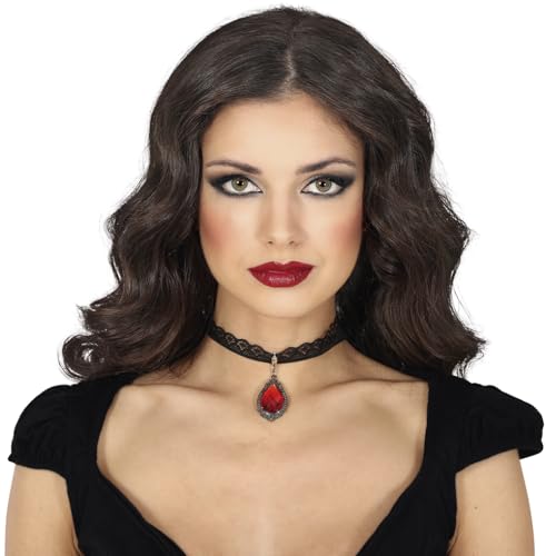 FIESTAS GUIRCA | Collier Ras du Cou avec Rubis (5 cm) - Bijou pour Costume de Princesse, Marquise et Vampiresse pour Halloween et Fêtes Costumées - Accessoire Idéal pour Femme Adulte - Noir