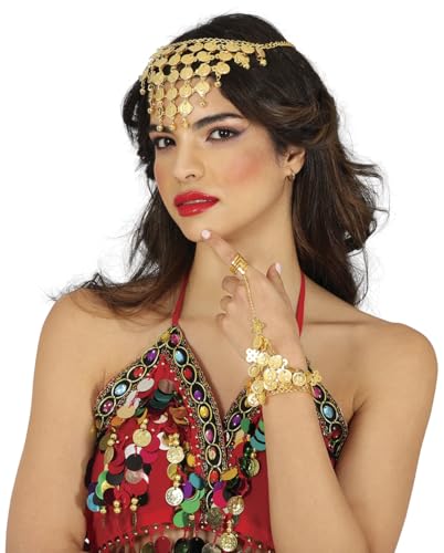FIESTAS GUIRCA | Ceinture de Monnaies Métallique pour Femme - Accessoire de Costume de Princesse du Désert, Gitane et Voyante - Idéal pour Fêtes et Célébrations - Femme Adulte - Or