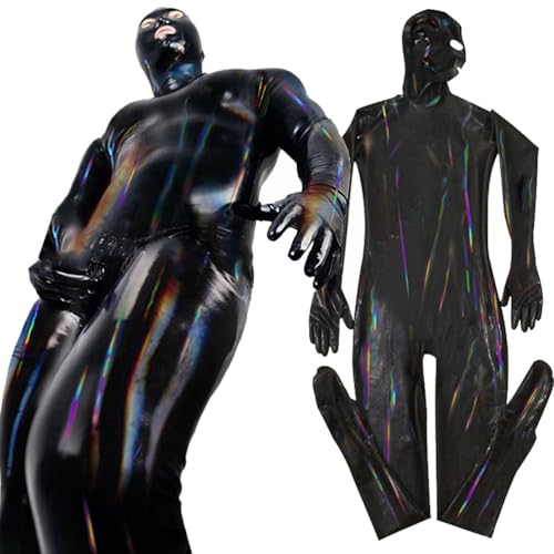 Générique Homme Sexy Noir Miroir Cuir Verni Décontracté Couvrant Fermeture Éclair Coupe Ajustée Combinaison DS Boîte De Nuit Scène Costume,Noir,XXL