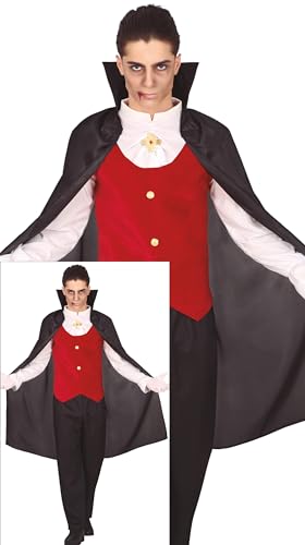FIESTAS GUIRCA | Costume Conde Vampiro Adulte (52-54/L) - Chemise, Cape, Gilet, Pantalon et Plastron - Costumes de Vampires pour Halloween, Carnaval et Fêtes de l'Horreur - Idéal pour Adultes