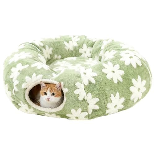 Tunnel de Jeu pour Chat - Caverne de Donut Cosy, Passage en Peluche, Jouet Interactif Abri, Tube de Repos Confortable | Pour Chatons Chiots Chiens Petits Animaux Intérieur Chambre Balcon Appartement