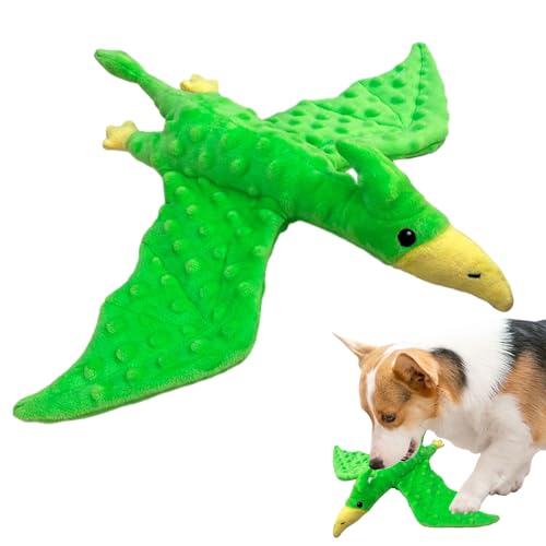 Jouet pour chien ptérodactyle en peluche - 44x12x35 cm peluche PP coton | Jouet à mâcher grinçant pour chiens | Robuste, cosy, orange, vert, rose rouge pour une utilisation intérieure et extérieure