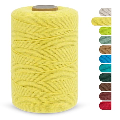 CAMAL Fil Macramé Simple Brin, Corde Macramé 1 mm Fil Coton 390m, Simple Brin Torsadé Ficelle de Macramé Coton a Crocheter pour Suspension Murale, Sac à Main, Panier (Jaune De Lin)