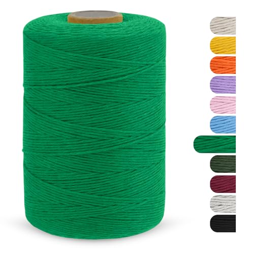 CAMAL Fil Macramé Simple Brin, Corde Macramé 1 mm Fil Coton 390m, Simple Brin Torsadé Ficelle de Macramé Coton a Crocheter pour Suspension Murale, Sac à Main, Panier (Vert)