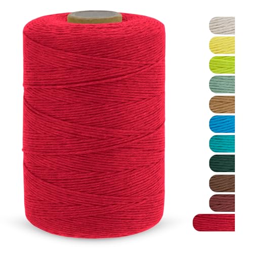 CAMAL Fil Macramé Simple Brin, Corde Macramé 1 mm Fil Coton 390m, Simple Brin Torsadé Ficelle de Macramé Coton a Crocheter pour Suspension Murale, Sac à Main, Panier (Rouge)