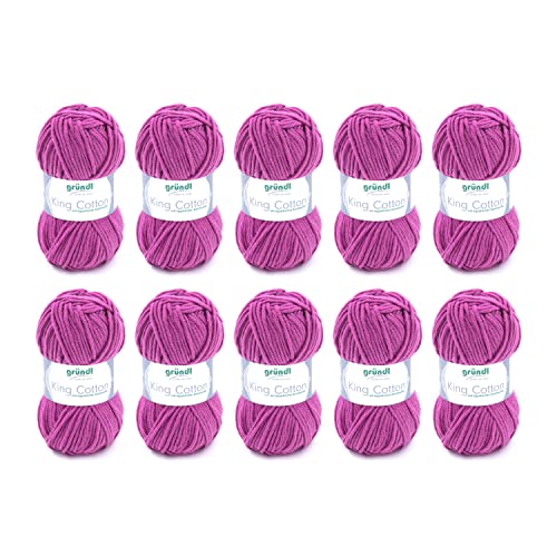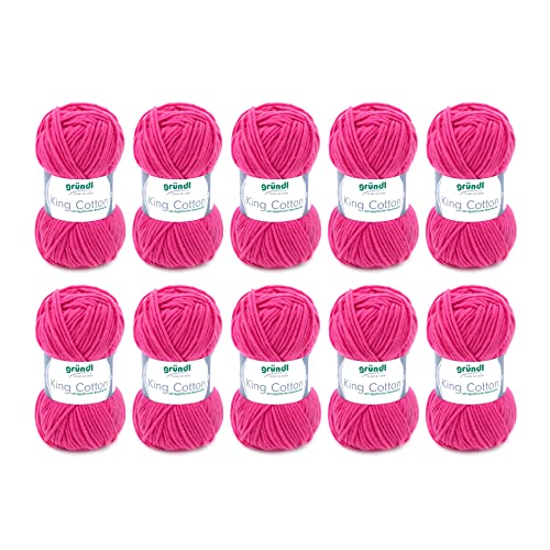 Gründl Laine King Cotton – laine épaisse pour tricoter – fil à crocheter – douce et agréable pour la peau – 55% polyacrylique, 45% coton – 10 pelotes 50 g / 78 m – taille d’aiguille 6–7 - fuchsia