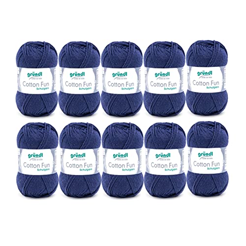 Gründl Laine Cotton Fun - laine pour crocheter - fil à tricoter - facile d’entretien et agréable pour la peau - 100% coton - 10 pelotes 50 g / 115 m - taille d’aiguille 3-4 - marin