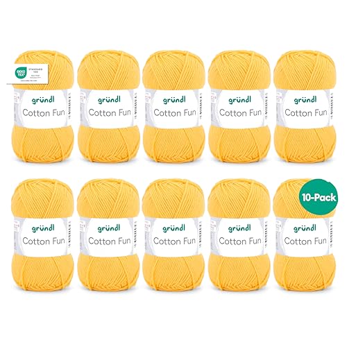 Gründl Laine Cotton Fun - laine pour crocheter - fil à tricoter - facile d’entretien et agréable pour la peau - 100% coton - 10 pelotes 50 g / 115 m - taille d’aiguille 3-4 - mais