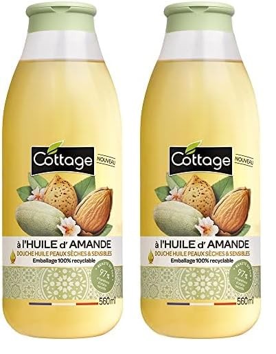 Cottage -Gel douche Huile 560ml 97% d'ingrédients d'origine naturelle, HUILE D'AMANDE 560ML (Lot de 2)