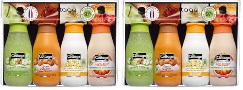 Cottage Kit Voyage - Gel Douche Gommage + gel Douche Lait + Lait Corps Hydratant + Shampoing Doux - 97% d'ingrédients d'origine naturelle - 4 * 50ml (Lot de 2)