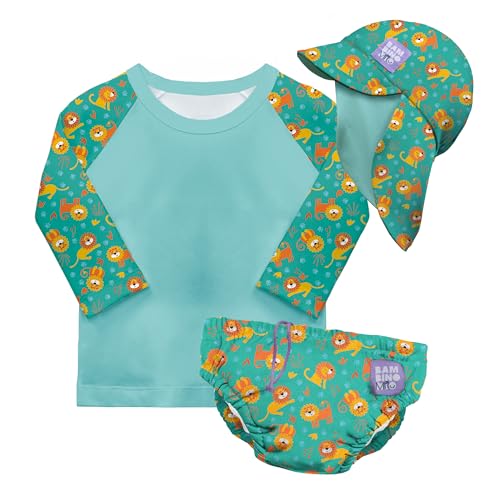 Bambino Mio Anti-UV UPF 40+ Ensemble de bain pour bébé (CROCO JOUEUR & 0 à 6 mois), avec couche de bain réutilisable et t-shirt de bain avec protection solaire