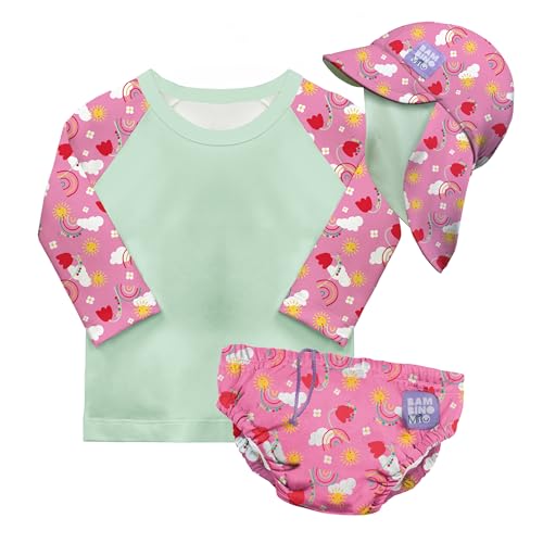 Bambino Mio Anti-UV UPF 40+ Ensemble de bain pour bébé (BONHEUR EN CIEL & 2 à 3 ans), avec couche de bain réutilisable et t-shirt de bain avec protection solaire