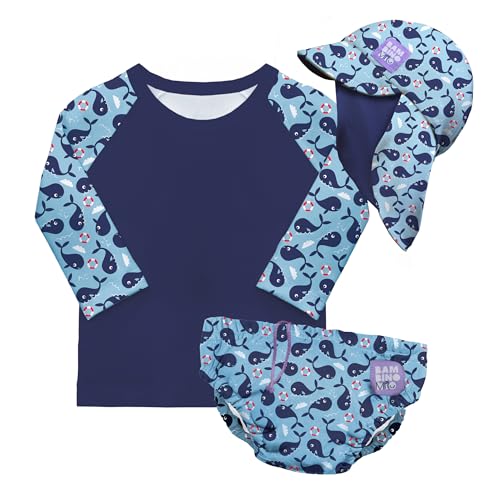 Bambino Mio Anti-UV UPF 40+ Ensemble de bain pour bébé (BAIE DES BALEINES & 2 à 3 ans), avec couche de bain réutilisable et t-shirt de bain avec protection solaire