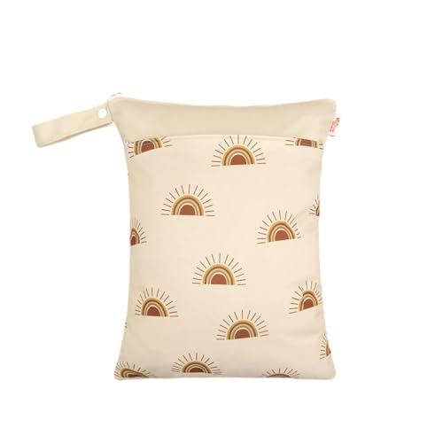 Hixingo Sac à Couche Imperméable, Motif Soleil Sac à Couches Lavables Wet Bag à Fermeture Eclair Réutilisable 1/2/4 Pièce Wet Bags pour Bébé, Voyage Plage Piscine (Couleur Caramel,1 Pièce)