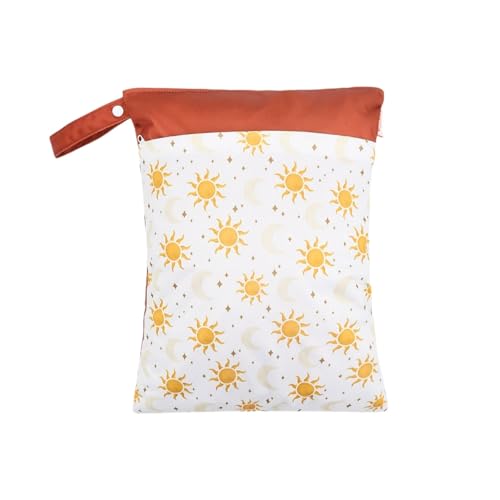 Hixingo Sac à Couche Imperméable, Motif Soleil Sac à Couches Lavables Wet Bag à Fermeture Eclair Réutilisable 1/2/4 Pièce Wet Bags pour Bébé, Voyage Plage Piscine (Soleil,1 Pièce)