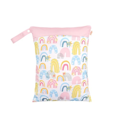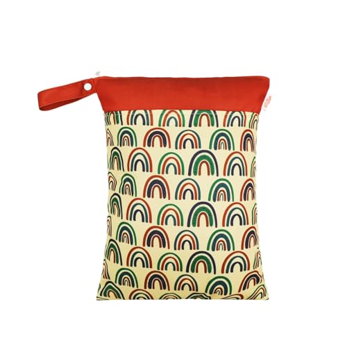 Hixingo Sac à Couche Imperméable, Motif Arc en Ciel Sac à Couches Lavables Wet Bag à Fermeture Eclair Réutilisable 1/2/4 Pièce Wet Bags pour Bébé, Voyage Plage Piscine (Couleur Caramel,1 Pièce)