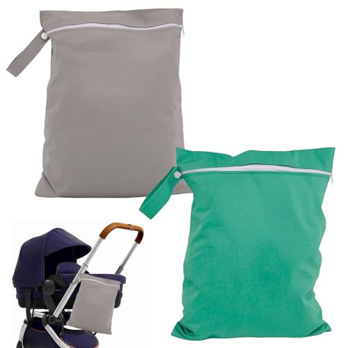 JJYHEHOT 2 Pcs Sac à Couches Lavables, Sac À Linge Mouillés, Sacs Humides Réutilisable, Wet Dry Bag Piscine Imperméable, Organiseur de Voyage pour la Couche de Bébé, Voyage, Plage, Natation