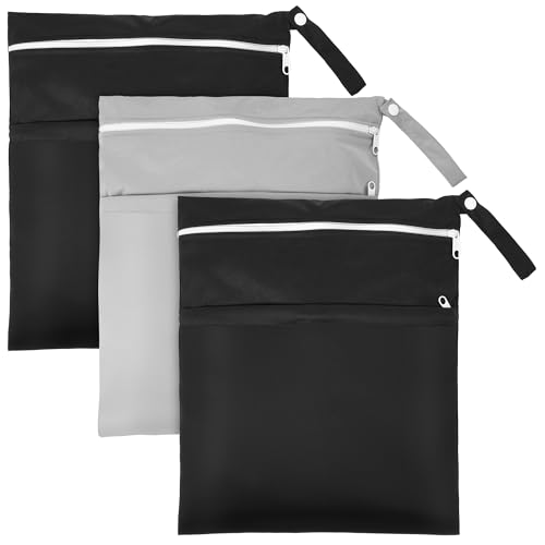 Huiguli 3PCS Sacs à Couches Lavables, Sacs Couches Réutilisables, Sacs Étanches à Couches avec Fermeture Éclair, Pochette Couche pour Bébé Plage Piscine Picnic Fitness Voyage(Noir+Gris)