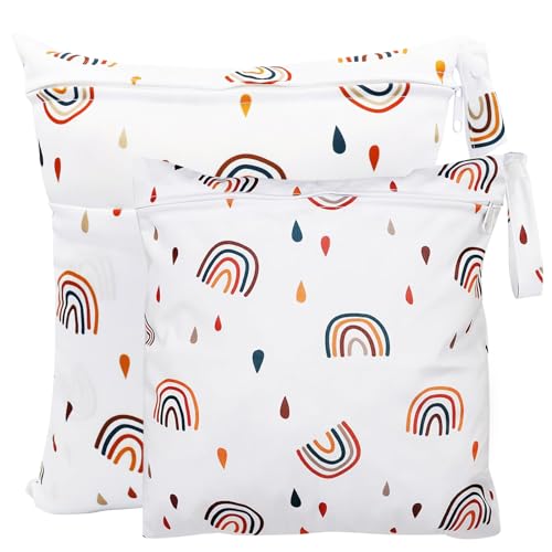 Hixingo Sac à Couche Imperméable, Motif Arc en Ciel Sac à Couches Lavables Wet Bag à Fermeture Eclair Réutilisable 1/2/4 Pièce Wet Bags pour Bébé, Voyage Plage Piscine (Rouge Rouille,2 Pièces)