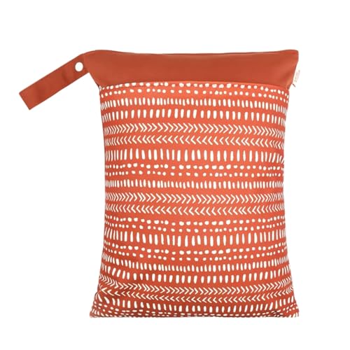 Hixingo Sac à Couche Imperméable, Motif Soleil Sac à Couches Lavables Wet Bag à Fermeture Eclair Réutilisable 1/2/4 Pièce Wet Bags pour Bébé, Voyage Plage Piscine (Rouge Rouille,2 Pièces)