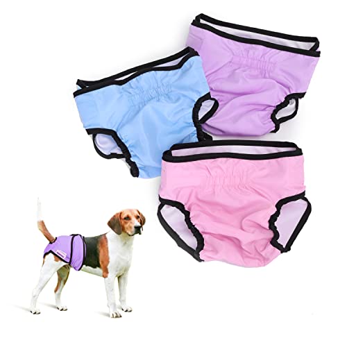 Avont 3 Couches Lavables pour Chien Femelle, Culotte Protection Confort Nappy Lors des Périodes Physiologiques, de Chaleurs, d'Incontinence-Violet/Rose/Bleu-L(45.5-61cm)