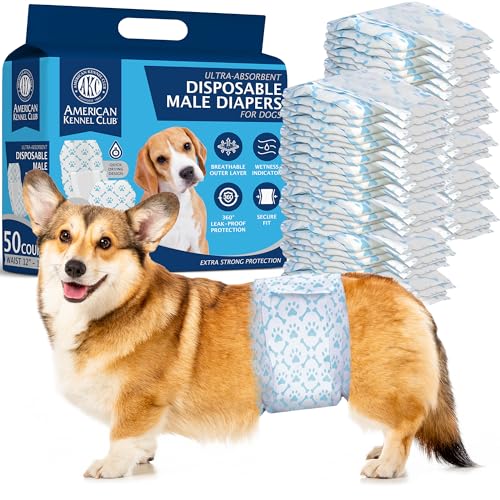 American Kennel Club Lot de 50 Couches jetables pour Chien mâle avec indicateur d'humidité Taille S