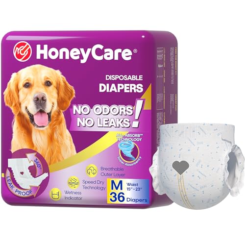 HONEY CARE All-Absorb Lot de 40 couches jetables pour chien femelle, améliorées, super absorbantes, respirantes, indicateur d'humidité