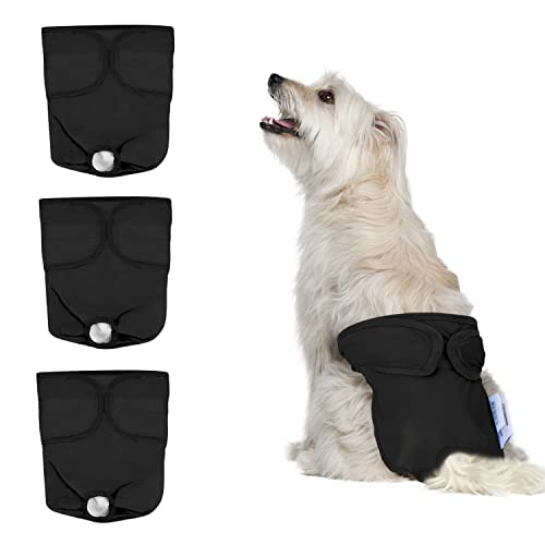 Nobleza 3X Couches Chien Lavables, Culottes Hygiéniques pour Chiens en Chaleur, Couches Hygiéniques Réutilisables pour Chien Femelle (M Taille 32-37.5cm, Lot de 3, Noir)