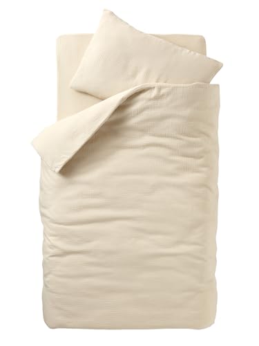 VERTBAUDET Parure bébé Housse de Couette + taie d'oreiller Unie en Gaze de Coton Bio* Vanille 100X140 40X60
