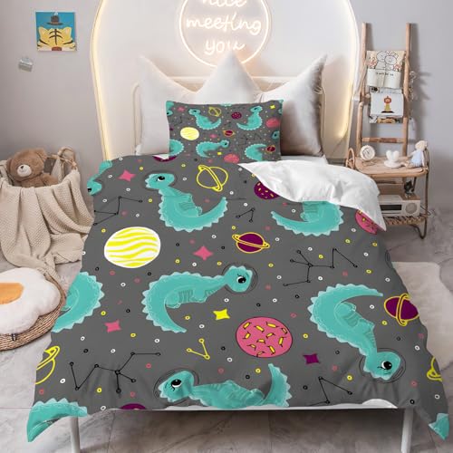 PNHCL Housse de Couette 100x140 Dinosaure Parure de Lit 1 Personne, Ciel Étoilé Housse Couette avec 1 Taie d'oreiller pour Enfant Fille Garcon Deco Chambre, Modèle de Dessin Animé Gris