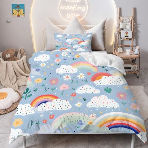 PNHCL Housse de Couette 100x140 Arc-en-Ciel Parure de Lit 1 Personne, Fleurs Housse Couette avec 1 Taie d'oreiller pour Enfant Fille Garcon Deco Chambre, Modèle de Dessin Animé Multicolore