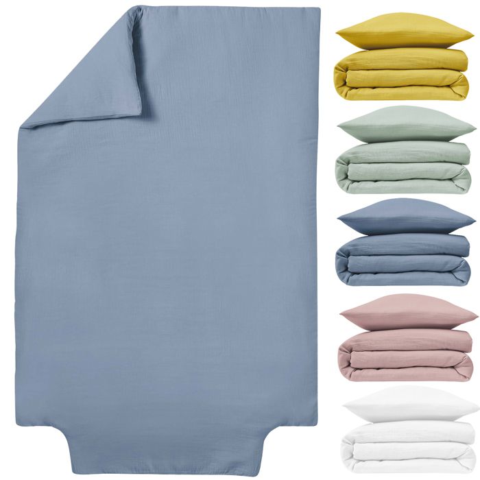 Housse de couette Bébé 100x135 100x140 cm - Gaze de Coton - Bleu Gris - Lit 60x120 ou 70x140 cm - Mousseline crépon Craftine Lange