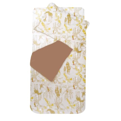 PNHCL Housse de Couette 100x140 Animal Parure de Lit 1 Personne, Fleurs Housse Couette avec 1 Taie d'oreiller pour Enfant Fille Garcon Deco Chambre, Thème de Dessin Animé Beige
