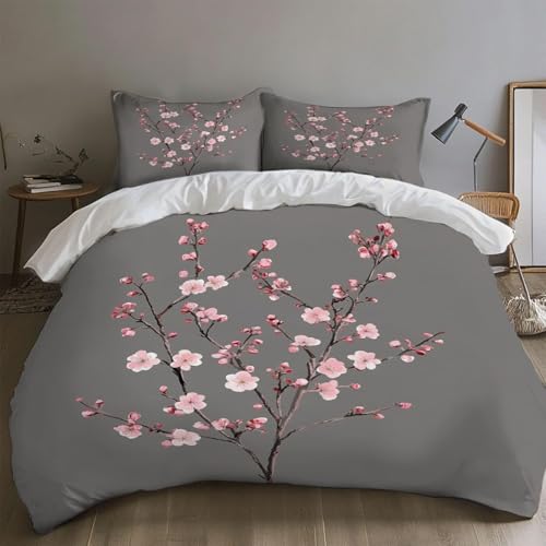 Housse de Couette 140x190 Fleurs de Cerisier Roses 3D Parure de Lit Plantes en Microfibre Doux Housses Couettes 1 Personne avec Fermeture Éclair avec 2 Taies d'oreiller 65x65 cm F.2648