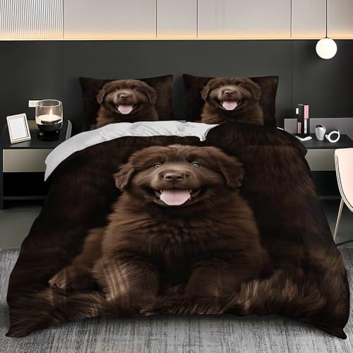 Housse de Couette 140x190 Terre-Neuve 3D Parure de Lit Animaux Domestiques en Microfibre Doux Housses Couettes 1 Personne avec Fermeture Éclair avec 2 Taies d'oreiller 65x65 cm F.2468