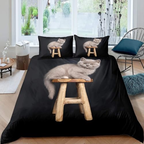 Housse de Couette 140x190 Chaton 3D Parure de Lit Animaux Mignons en Microfibre Doux Housses Couettes 1 Personne avec Fermeture Éclair avec 2 Taies d'oreiller 65x65 cm F.2504